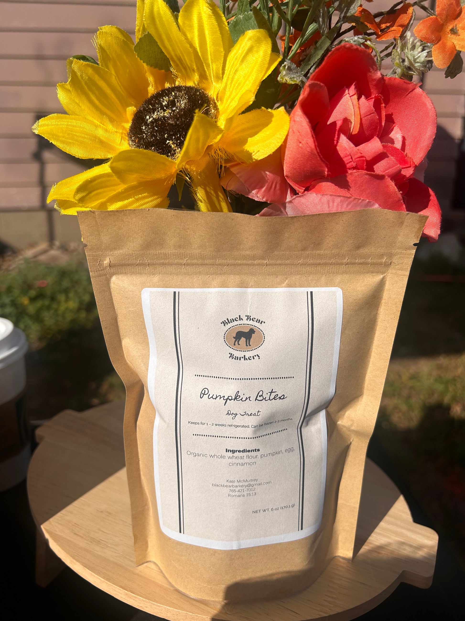 Bite sized treats made with only 4 ingredients: whole wheat flour, organic pumpkin puree, egg, and cinnamon.